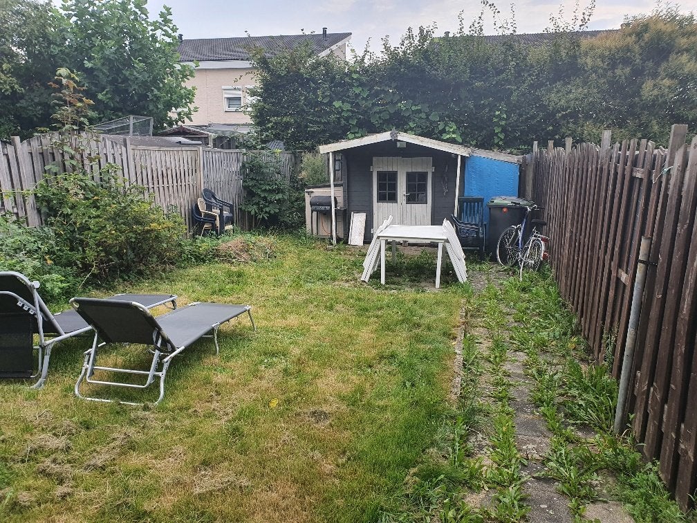 Via het hofje toegang tot het mandelig pad / brandgang dat toegang bied tot de goed omsloten tuin van circa 95m2 met tuinhuis.